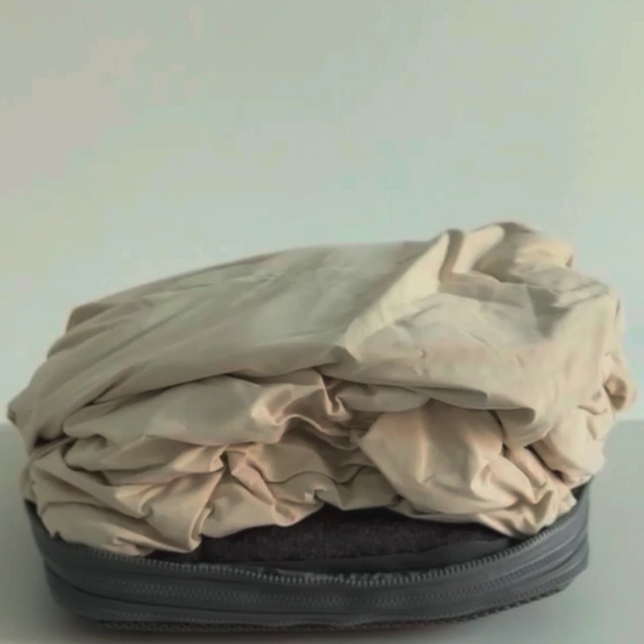 Sia洗壓包 採用輕薄且強韌的網布材質與拉鍊壓縮結構, 一包最多可壓縮近 50% 的空間,讓你的衣物更加緊密、整齊、好找。 從衣櫃到行李箱,每一吋空間都物超所值。